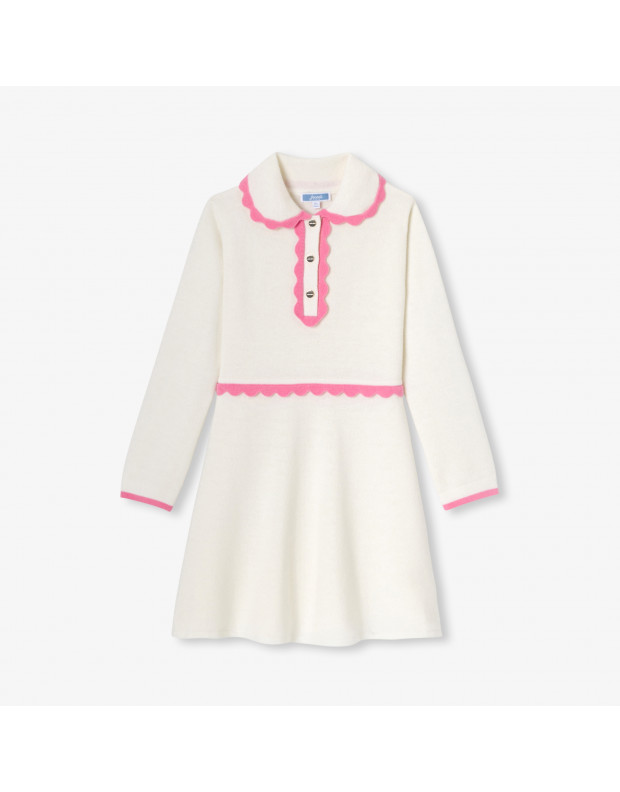 This season, Jacadi designers revisit the winter dress to create a chic, geometric style. In sustainable wool and cashmere, a trompe-l'œil silver intarsia bow, a marked waist and a flared base structure this couture-style piece full of charm. Worn with tights and ankle boots, it will be perfect for the festive season.