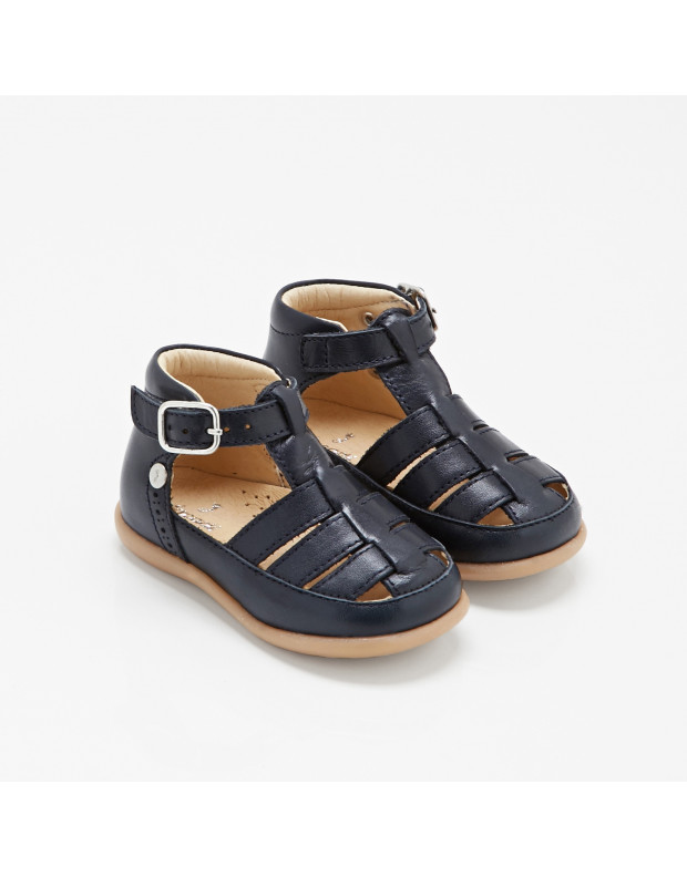 In blue nubuck or smooth black leather, baby boy sandals opt for a contemporary retro look with their wide buckle straps and cork-effect sole. Featuring an ergonomic insole and a non-slip sole for comfort and stability, these easy-to-slip-on summer sandals are the perfect finishing touch to formal wear and everyday outfits.