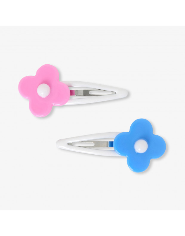 A pretty heart and small resin flower adorn this delightful pair of clip-on barrettes. Ideal for keeping small strands of hair in place and enhancing pigtails and buns, these easy-to-attach hair clips are a pretty accessory for everyday hairstyles.